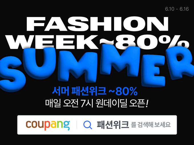 쿠팡은 오는 16일까지 ‘서머 패션위크’를 열고 여성복·남성복·신발 등 패션 카테고리 상품 2만여 개를 최대 80%까지 할인한다고 12일 밝혔다.