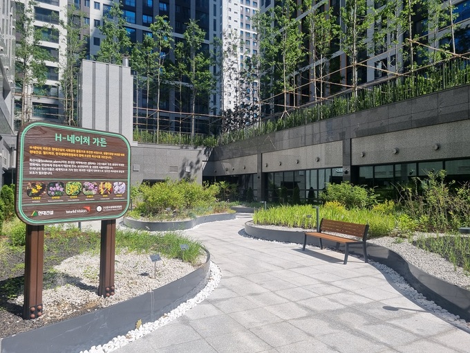 현대건설은 경기 용인시 '힐스테이트 용인 둔전역' 단지에 미선나무, 히어리 등 12종의 특산·자생식물 약 4천본을 식재한 공원 'H-네이처가든'을 조성한 바 있다.