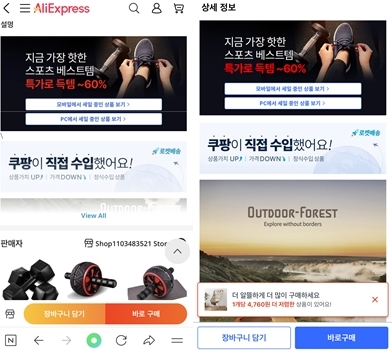 20일 유통업계에 따르면 알리익스프레스는 중국 등에서 직매입해 판매하는 쿠팡의 로켓배송 상품을 입점시켜 유통하고 있는 것으로 나타났다.