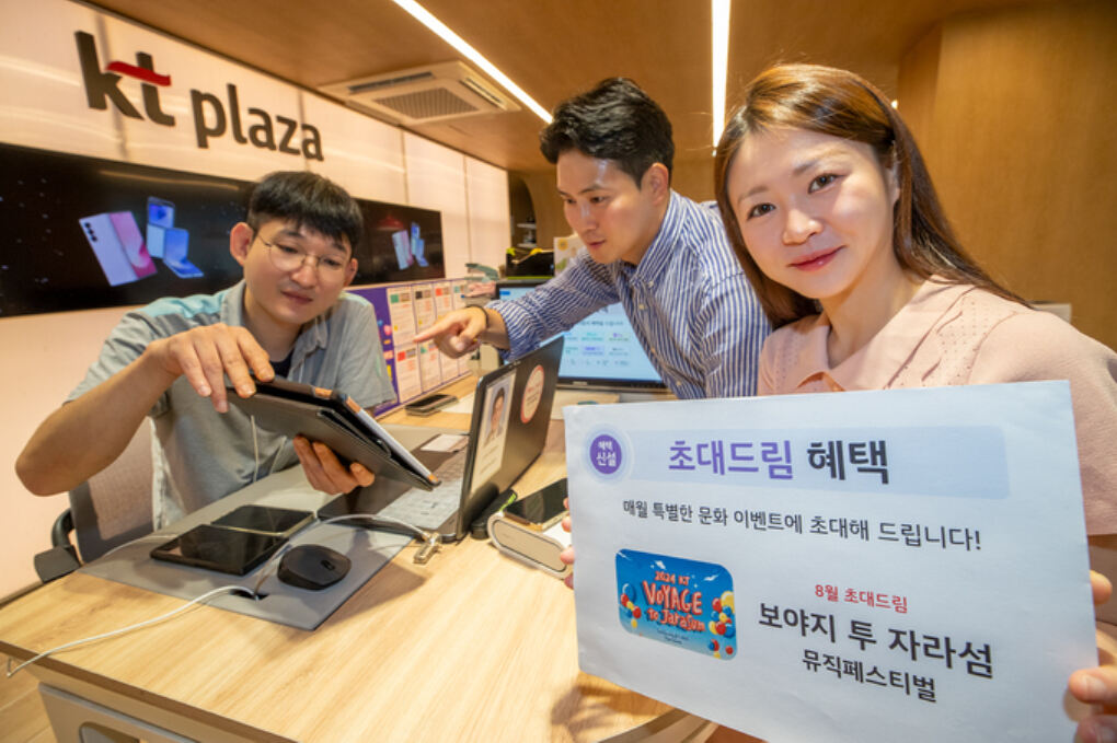 이달 초대드림은 KT의 대표 고객 행사인 ‘보야지 투 자라섬’ 뮤직 페스티벌 초청 혜택을 준비했다. 장기고객은 이날부터 KT닷컴과 마이케이티 앱을 응모할 수 있다. KT는 추첨을 통해 총 5000명을 초청할 계획이다. 내달 초대드림은 ‘키즈랜드 병지방 캠핑장’ 초청으로 예정됐다.