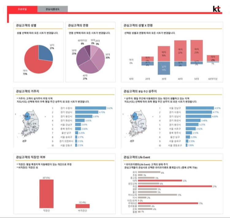RCS는 기존 문자 서비스에서는 불가능했던 고용량·고화질 파일 첨부, 읽음 표시 안내 등 다양한 기능을 지원하는 차세대 문자 서비스다. KT가 새롭게 선보이는 내고객분석리포트는 RCS 문자 수신 고객의 정보를 분석해 성별·연령 같은 인구 통계와 관심사를 정리해 기업고객에게 제공한다.