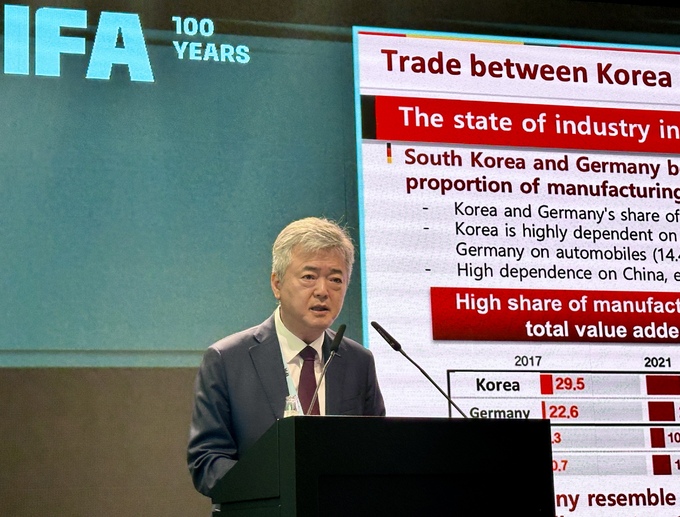 행사에 직접 참여한 한국무역협회 이인호 부회장은 한국인으로서는 유일하게 IFA측으로부터 콘퍼런스 연사 초청을 받고 ‘혁신을 통한 양국간 새로운 경제교류의 길(Trade Driven by Innovation)을 주제로 강연에 나섰다. 이 부회장은 ▲한독 무역‧경제협력, ▲양국 스타트업 생태계 연계 필요성, ▲양국 대-중견기업-스타트업 오픈이노베이션을 통한 신성장 동력 발굴, ▲글로벌 공급망 분절화 및 ESG 등 글로벌 이슈에 대한 공동 대응을 제안했다.