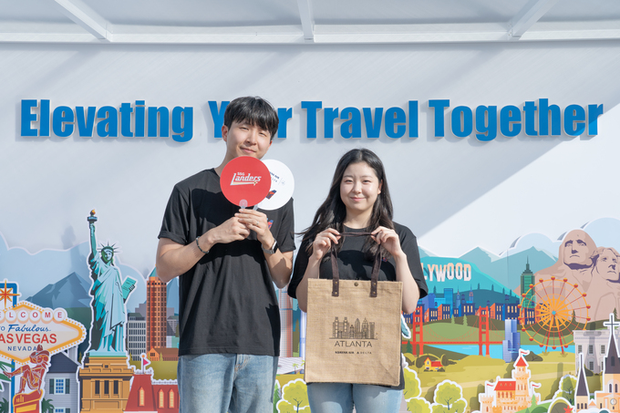 먼저 양사의 미국 내 취항지를 알리기 위해 포토존을 미국 랜드마크로 구성했다. 홍보부스 바닥도 미국 대형 지도로 꾸며 관람객들이 걸어 다니며 자연스럽게 양사의 미국 취항도시를 알 수 있도록 했다.