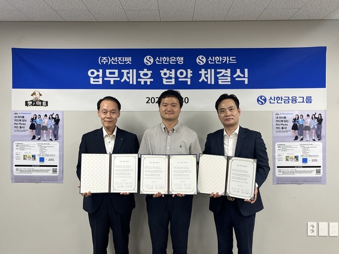 반려동물용품 프랜차이즈 ㈜선진펫과 신한카드가 지난 8월 30일 마케팅 활동과 다양한 직·가맹점 혜택을 위한 서비스 제공을 목적으로 업무 협약을 체결했다고 8일 밝혔다.