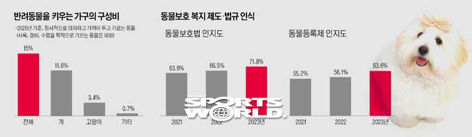 2014년부터 시행된 반려동물 등록제에 따라 보호자는 3만~5만원을 내고 내·외장형 식별장치를 반려견에게 이식 또는 장착해야 한다. 그러나 농림축산식품부의 ‘2023년 동물복지에 대한 국민의식조사’ 결과를 보면, 지난해 11월 기준 반려견을 등록했다는 응답은 76.4%에 그쳤다. 동물 등록제를 알고 있다는 응답은 63.6%였다.