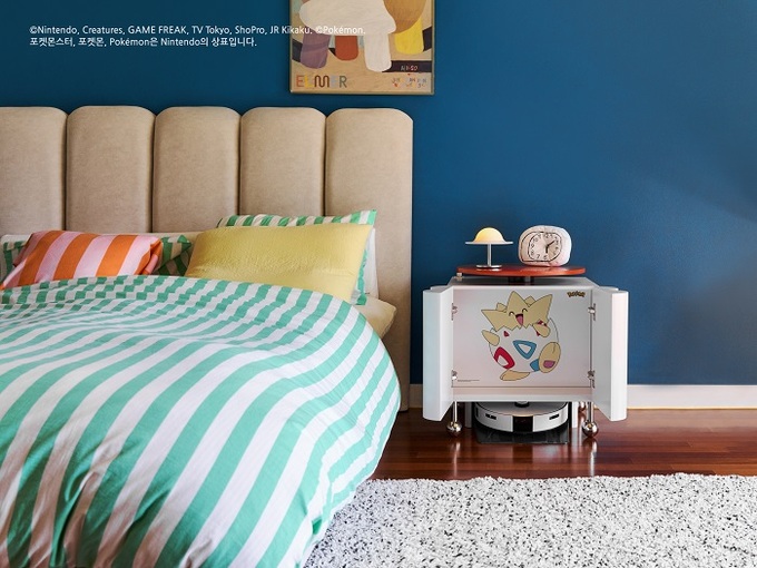 ‘삼성 비스포크 AI 스팀 포켓몬 에디션’은 삼성 로봇청소기의 스팀 스테이션을 커버하는 수납장이 포함된 인테리어 가구와 로봇청소기를 콜라보한 제품으로, 포켓몬 아이덴티티를 가구에 녹여낸 포켓몬 에디션 제품이다.