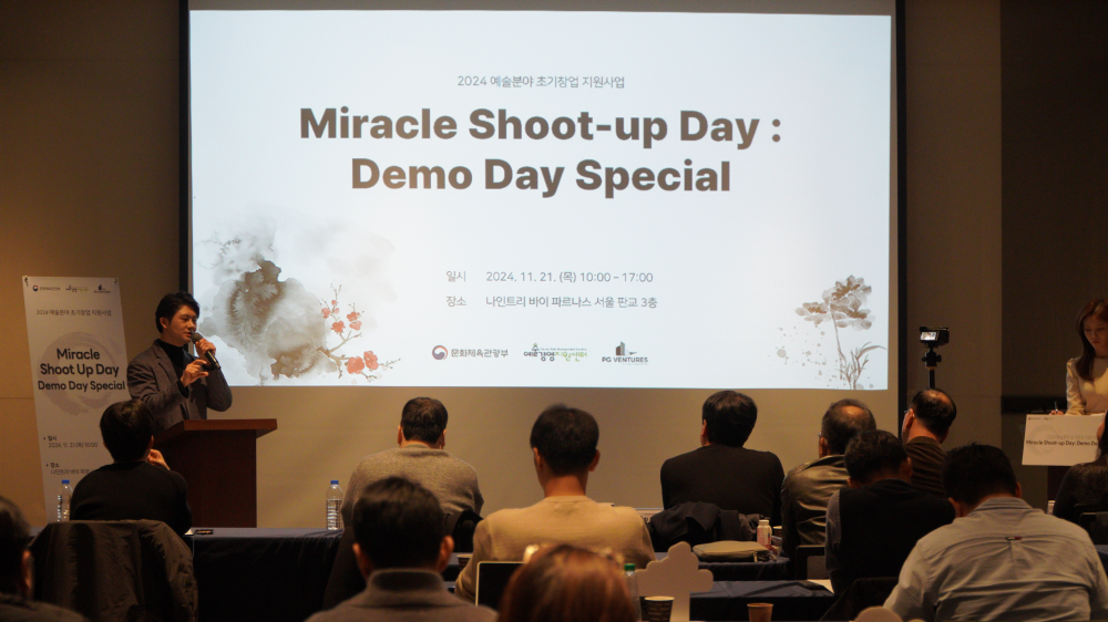 예술경영지원센터가 주최하고 피지벤처스(PG벤처스)가 주관한 ‘2024 예술분야 초기창업 지원사업 데모데이(Miracle Shoot-up Day)’가 지난 21일 성남시 판교 소재 나인트리 바이 파르나스 서울 판교에서 마무리됐다.