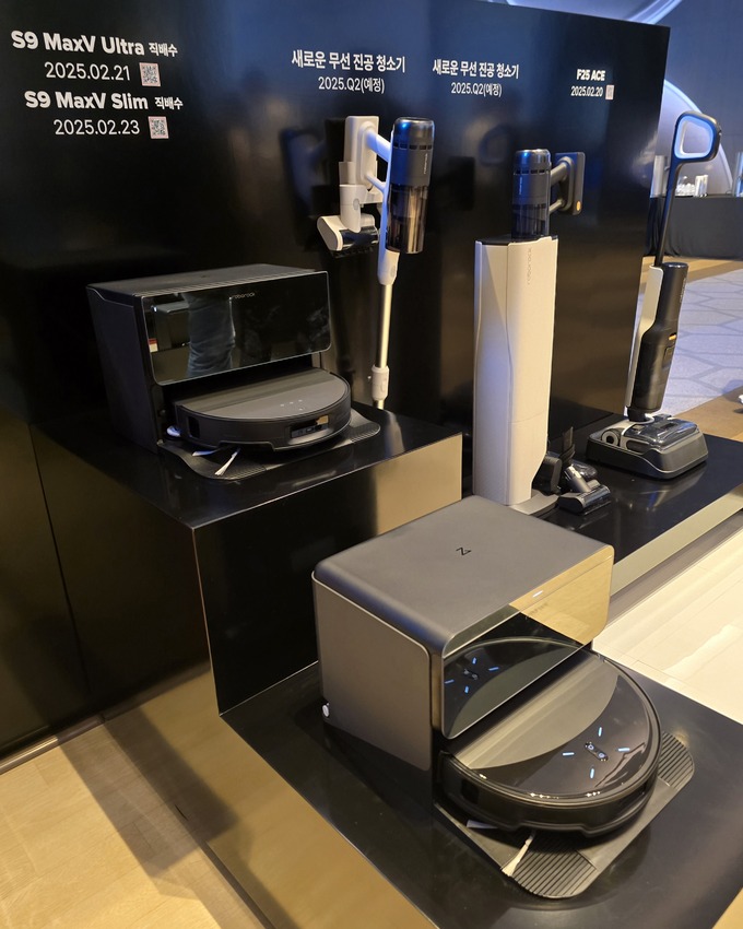 로보락은 20일 서울 강남구 그랜드 인터컨티넨탈 서울 파르나스 호텔에서 ‘2025 로보락 론칭쇼’를 개최하고 신제품을 공개했다. 이날 선보인 ‘S9 맥스V 울트라’와 ‘S9 맥스V 슬림’은 종전 모델 대비 청소 기능과 내비게이션 시스템, 본체 및 도크 기능이 개선된 게 특징이다. 두께는 역대 로보락 제품 중 가장 얇은 7.98㎝에 불과하다.