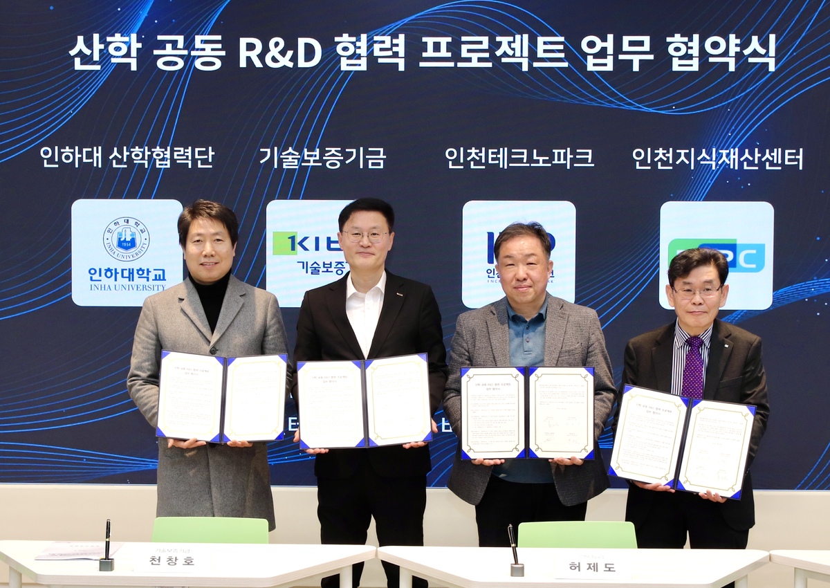 기술보증기금은 인천테크노파크, 인천지식재산센터, 인하대학교 산학협력단과 ‘산학 공동 연구개발(R&D) 협력 프로젝트 업무 협약’을 체결했다고 18일 밝혔다.