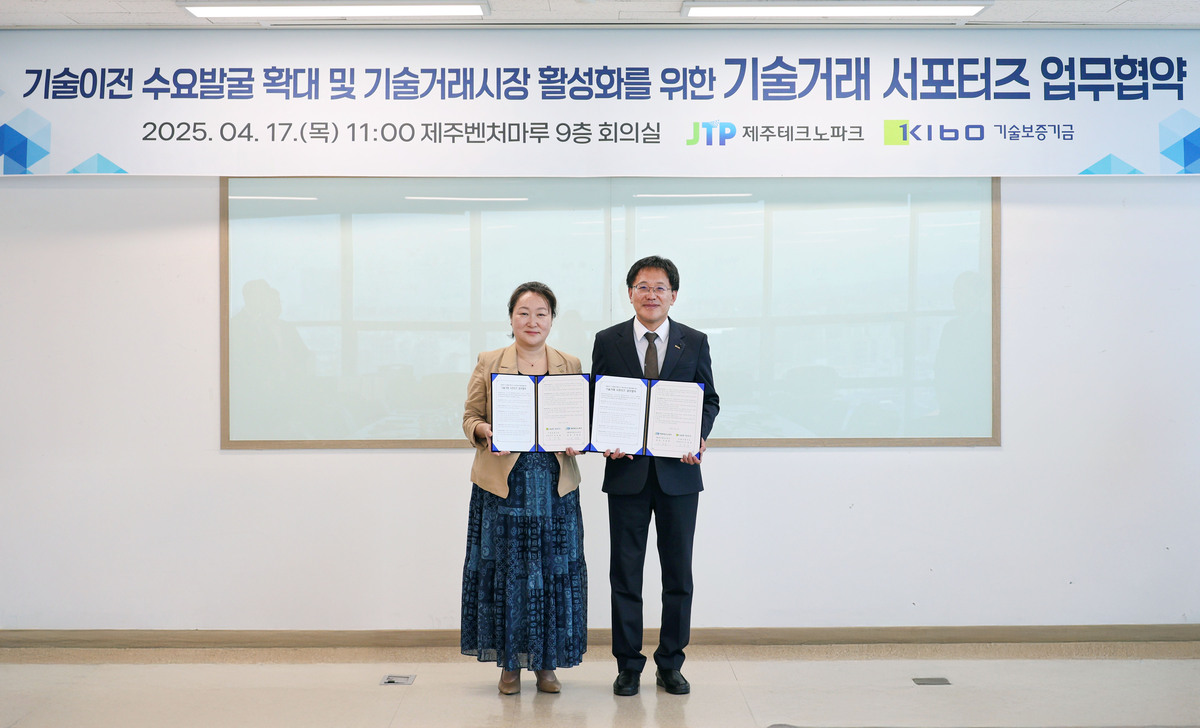 기술보증기금은 제주테크노파크(제주TP)와 ‘기술이전 수요발굴 확대 및 기술거래시장 활성화를 위한 기술거래 서포터즈 업무협약’을 체결했다고 17일 밝혔다.