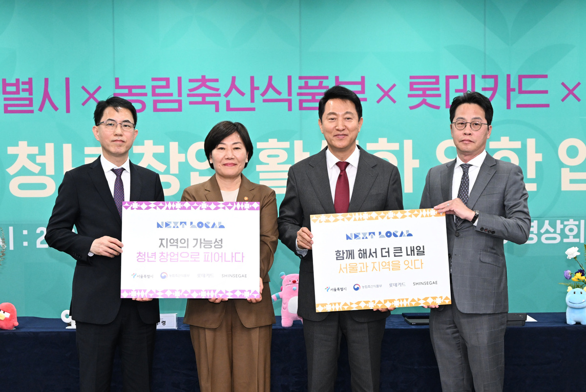 서울특별시 넥스트로컬 사업은 수도권 밖 인구감소 지역의 유무형 자원을 활용해 서울 청년이 지역과 연계하거나 지역 내에서 창업하도록 지원하는 사업이다. 이번 협약에서 롯데카드는 농림축산식품부, 신세계와 함께 넥스트로컬 사업의 협력기관으로 참여한다. 13일 열린 협약식에는 서울특별시 오세훈 시장과 농림축산식품부 송미령 장관, 롯데카드 조좌진 대표이사, 신세계 김선진 부사장이 참석했다.