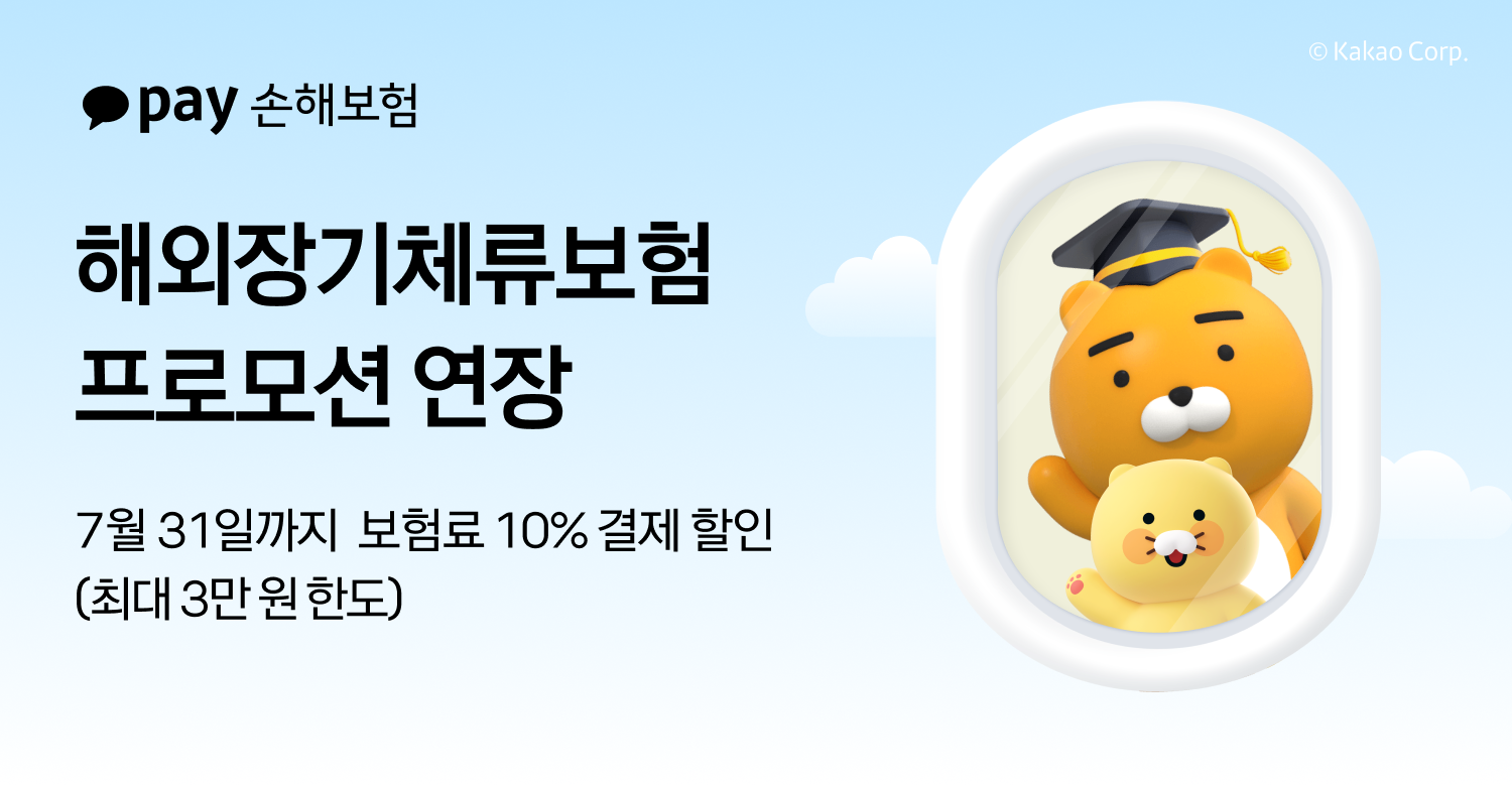 카카오페이손해보험이 해외장기체류보험(해외N달살기보험) 보험료 10%(최대 3만 원 한도) 결제 할인 프로모션을 한 달 더 연장한다고 23일 밝혔다.