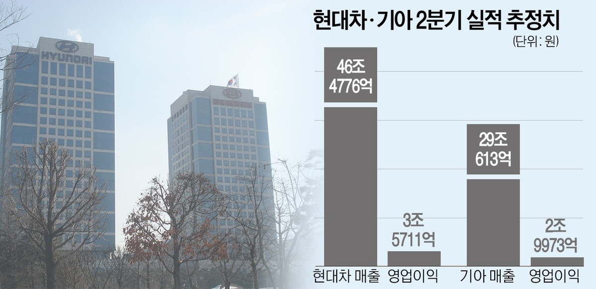 21일 업계에 따르면 현대차는 오는 24일, 기아는 25일 각각 컨퍼런스콜을 통해 2분기 실적을 발표한다. 주요 증권사 리포트에 따르면 현대차의 2분기 예상 매출은 46조4776억원, 영업이익은 3조5711억원으로 집계됐다. 매출은 전년 동기 대비 3.2% 증가했지만, 영업이익은 16.5% 감소한 수치다. 기아 역시 매출은 29조613억원으로 전년 동기 대비 5.4% 증가한 반면, 영업이익은 2조9973억원으로 17.7% 감소할 것으로 전망된다.