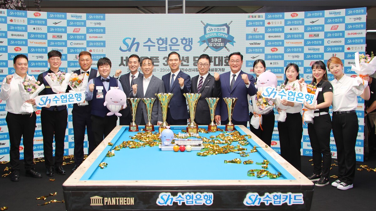 Sh수협은행은 지난 19일부터 23일까지 서울시 동작구 노량진수산시장 등에서 개최된 ‘Sh수협은행 서울오픈 3쿠션 당구대회’가 성황리에 종료됐다고 24일 밝혔다.