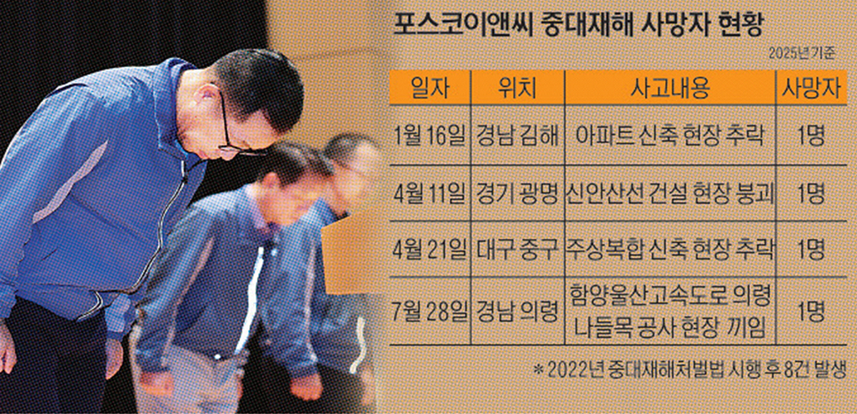 대국민 사과 이후에도 달라진 건 없었다. 포스코이앤씨에서 또 안전사고가 일어났다. 고용노동부 장관이 강도 높은 유감을 표명하는 등 건설 ‘산재 단골’ 포스코이앤씨를 향한 정부의 압박이 한층 더 거세지고 있다.