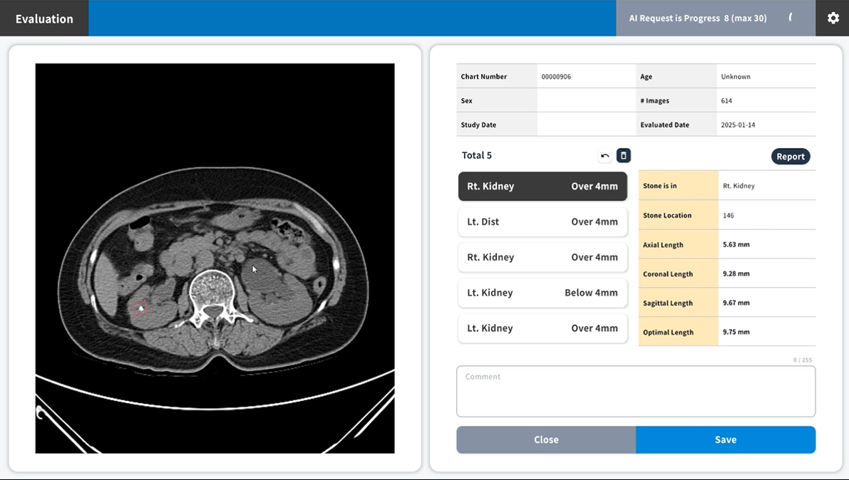 기존에는 비뇨의학과 전문의가 CT 이미지를 한 장씩 판독해야 하는 만큼 시간이 소요되고 작은 결석을 놓칠 가능성도 있었다. 하지만 ‘URO dot AI’는 5분 이내에 결과를 도출해 환자 진료의 속도와 정확성을 동시에 높인다.