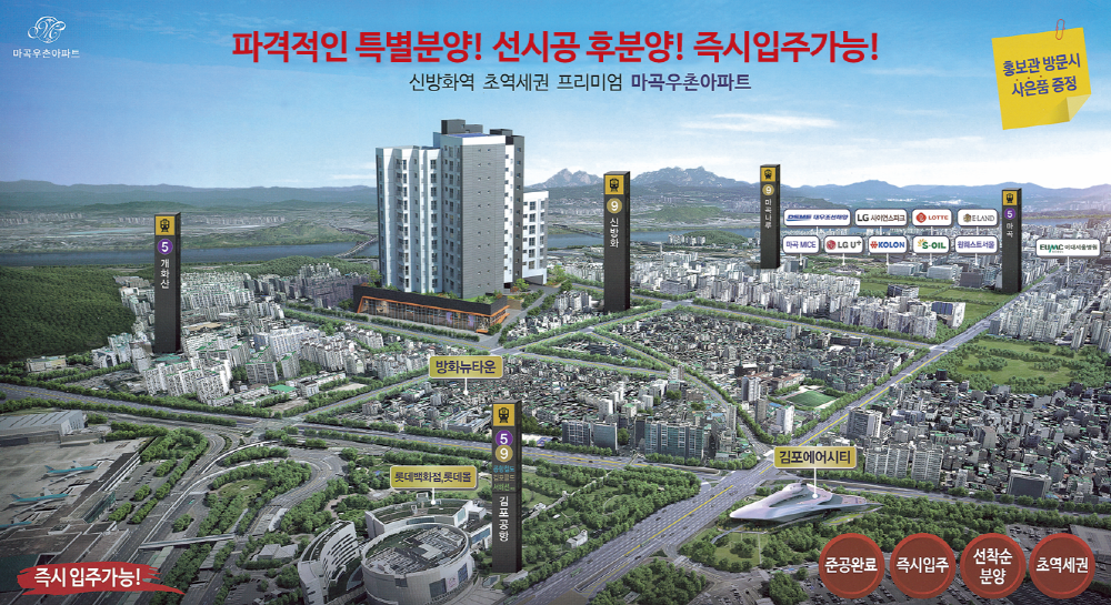 분양관계자에 따르면 서울 강서구 방화동에 위치한 ‘마곡우촌아파트’는 지하철 9호선 신방화역, 5호선 개화산역 5분 거리의 초역세권 아파트로 발코니 확장을 비롯해 시스템에어컨, 시스템냉장고 등 무상 옵션 제공과 함께 분양을 진행 중이다.