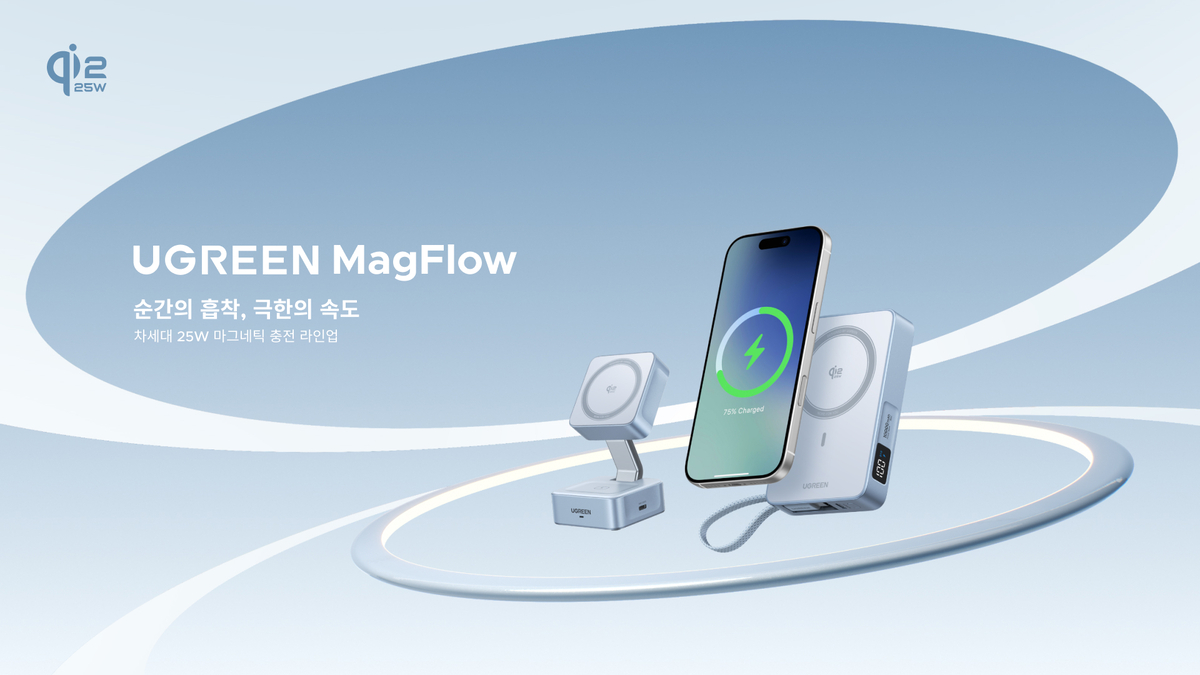 글로벌 소비자 전자제품 브랜드 유그린(UGREEN)이 최신 무선 충전 기술인 'Qi2 25W 표준'을 적용한 '매그플로우(MagFlow) 25W Qi2 시리즈'를 출시한다.