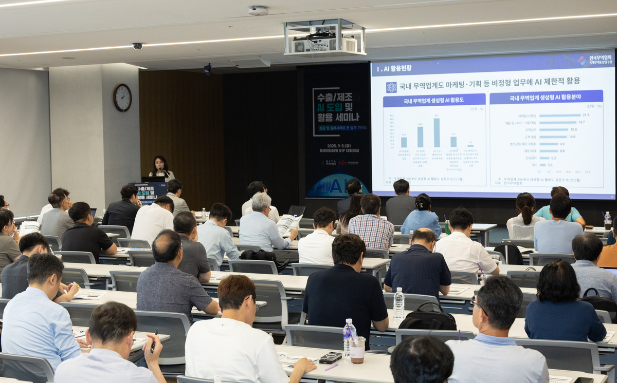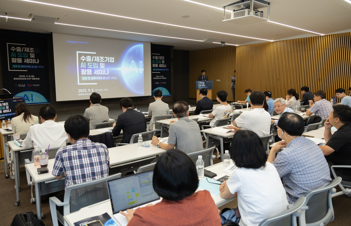 한국무역협회(KITA, 회장 윤진식)는 5일 서울시 강남구 삼성동 트레이드타워에서 한국생산성본부(KPC, 회장 박성중)와 공동으로 ‘수출·제조기업 AI 도입 및 활용 세미나’를 개최했다.