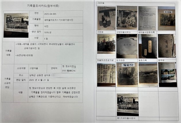 김씨도 국가기록유산포털 등 기록물 발굴·보전 사이트를 통해 남해 지역의 문화적 가치가 있는 기록물을 찾고 문화적 가치가 있는 기록물을 찾아 나선다. 지역문화 기록가들은 발견한 민간 기록물을 기록물 조사카드에 빼곡히 기록한다. 기록물은 대체로 사진을 포함한 마을 회의록, 물품, 졸업장과 같은 개인, 단체의 다양한 유형물들이다.