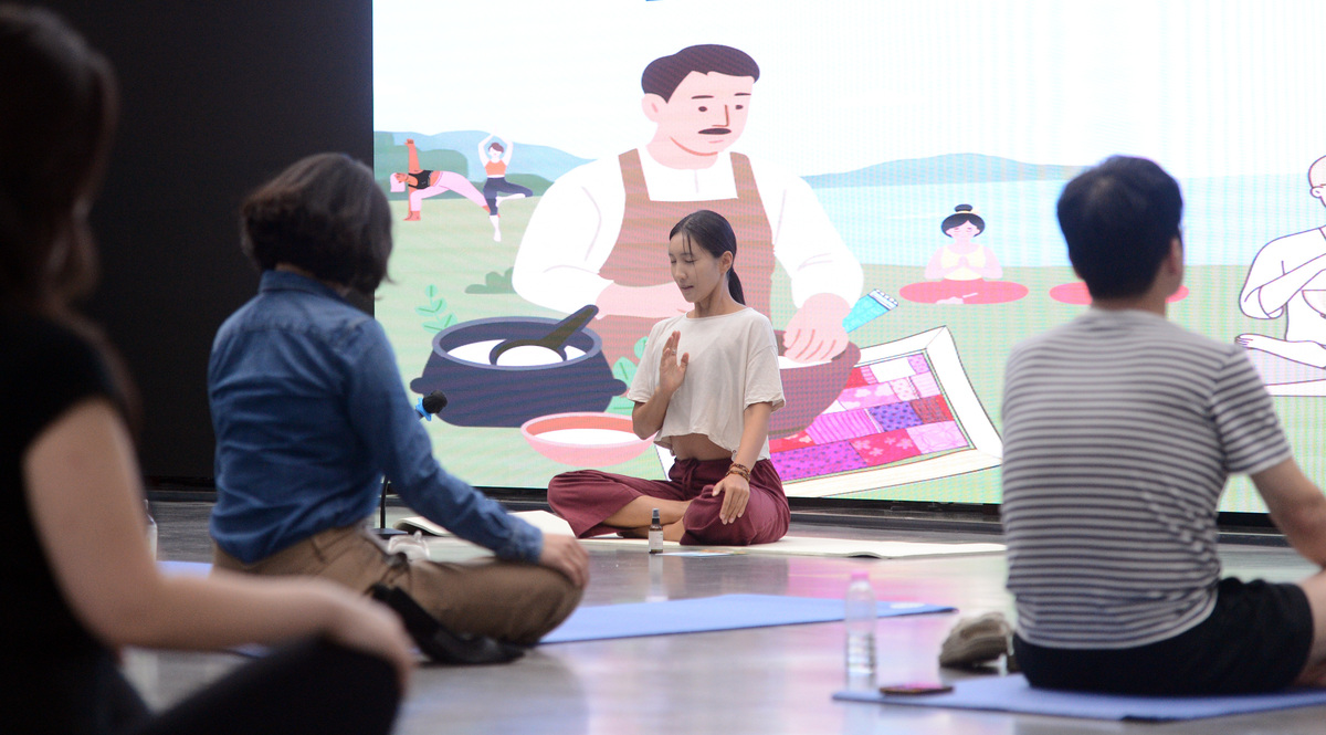 프로그램을 통해 참가자들의 육체와 정신을 가다듬는 시간을 가졌다. 해당 프로그램은 골반 통증을 완화하는 요가 동작을 통해 심신을 안정시키는 데 도움을 준다. 또한 깊은 호흡을 통해 육체가 들숨과 날숨으로 육체를 이완하는 과정을 거쳤으며, 마법처럼 신비로운 최 강사의 목소리가 자체에서 힐링을 느낄 수 있었다.