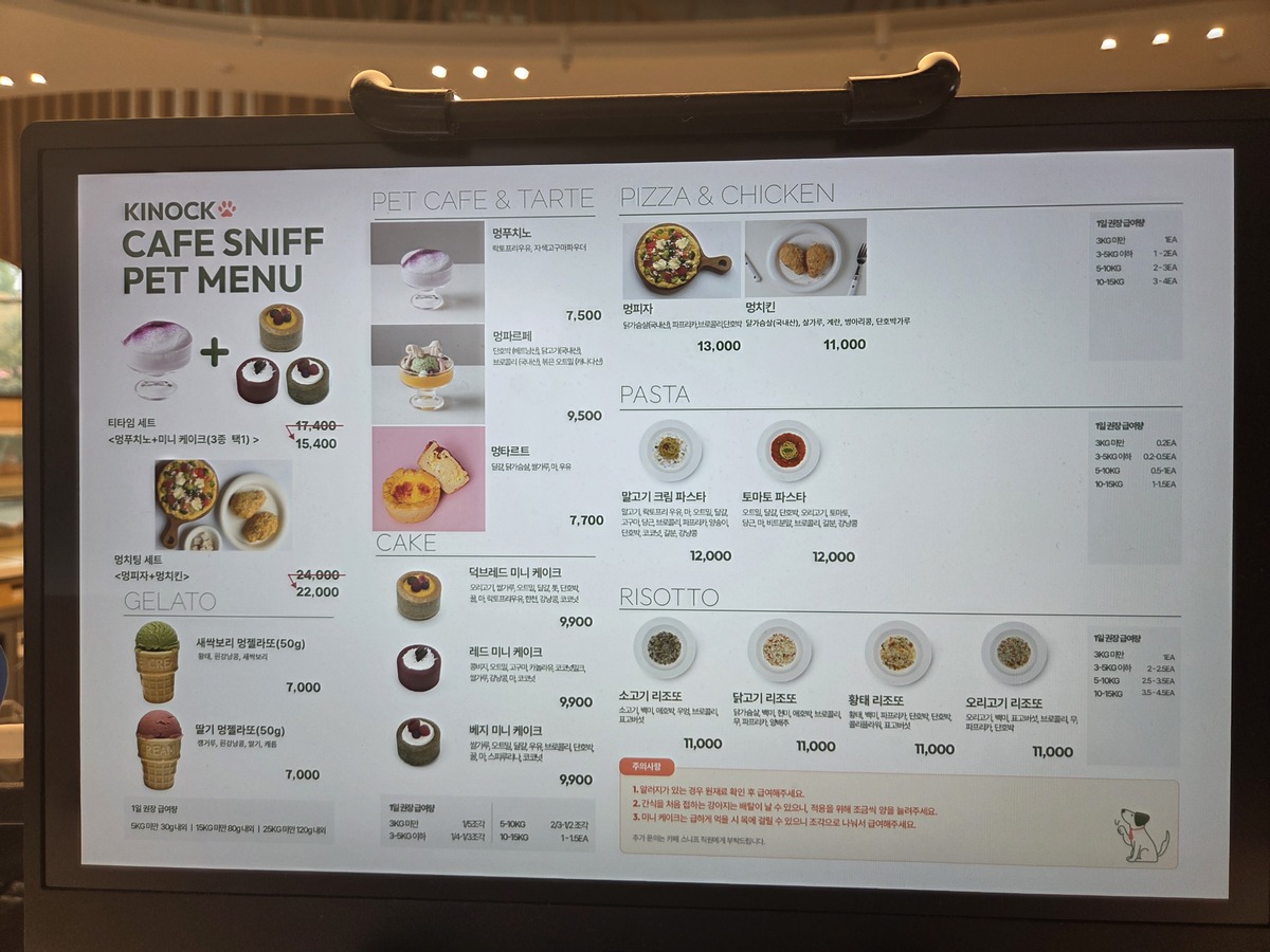 오픈 초기부터 고급이면서도 세심한 펫프렌들리 시설로 인기를 얻은 키녹(관련기사 : 펫호텔 ‘키녹’ 인기비결... 댕댕이 ‘키’우는 반려인 ‘녹’이는 감동 디테일 - https://www.sportsworldi.com/newsView/20250216506389)은 이후로 즐길 거리 확장에 신경을 쏟고 있다. 우선 스니프는 메뉴가 크게 늘었다. 반려견 메뉴는 멍푸치노, 멍파르페로 시작해 현재는 멍치킨, 멍피자, 멍젤라또, 멍리조또, 멍파스타, 멍타르트, 멍케이크 등 16종으로 늘었다.