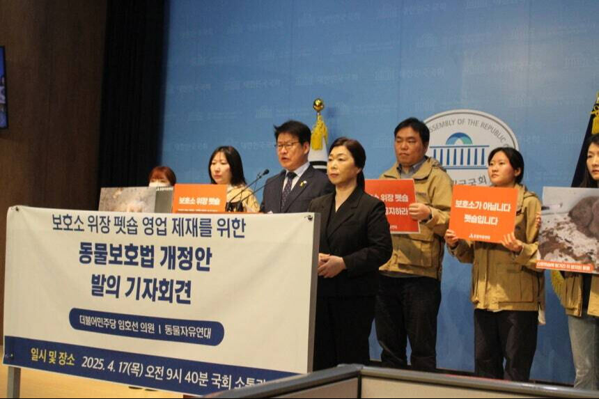 앞서 동물자유연대는 지난 4월 더불어민주당 임호선 의원과 함께 국회에서 기자회견을 열고 영리 목적의 피학대동물, 유실·유기동물, 사육포기동물의 인수를 금지하고 펫숍 등에서 보호시설로 오인할 수 있는 명칭을 사용하지 못하게 하는 내용의 동물보호법 개정안을 발의했다고 밝힌 바 있다. 하지만 해당 법안은 약 5개월이 지난 현재까지도 여전히 국회에서 계류 중이다.