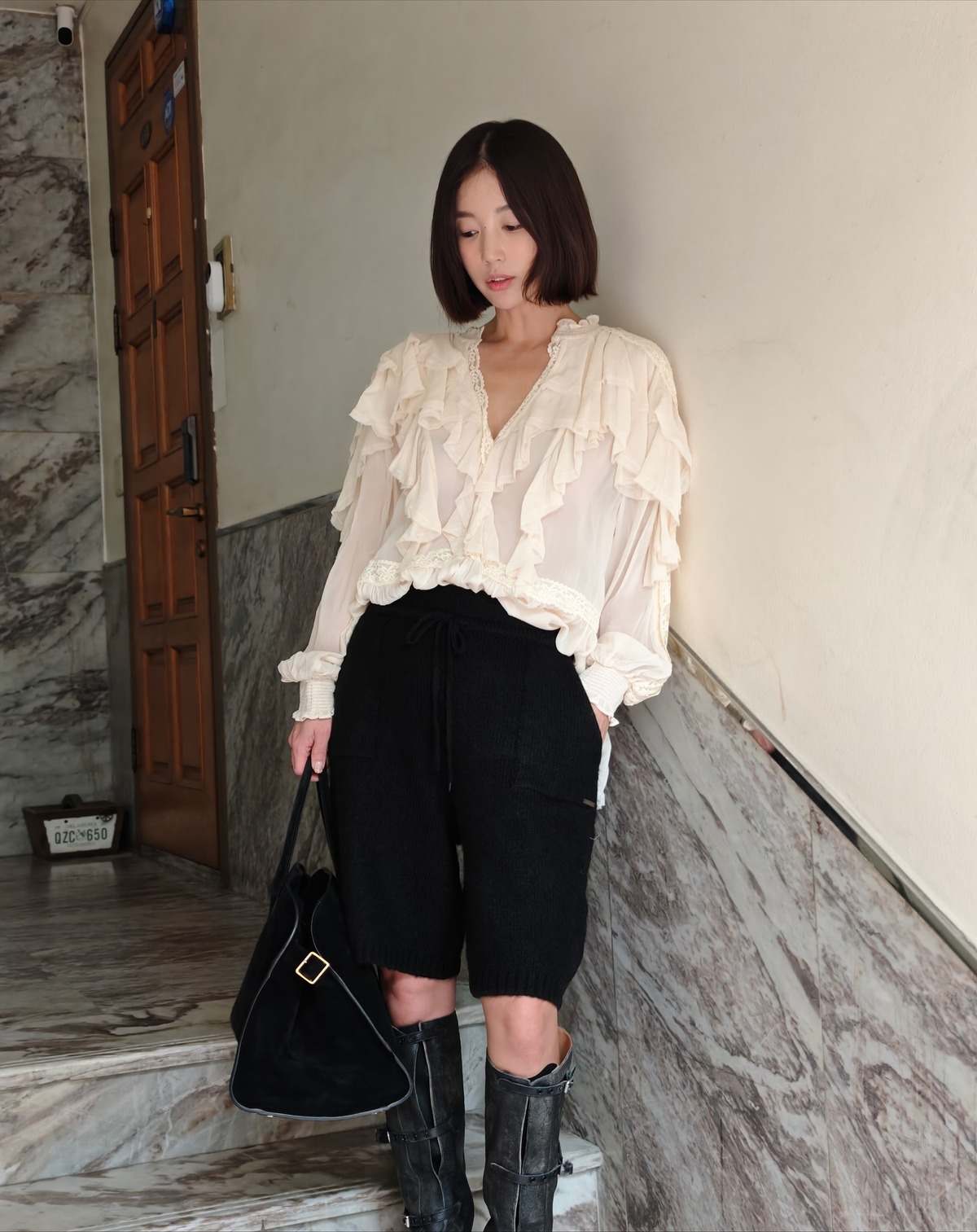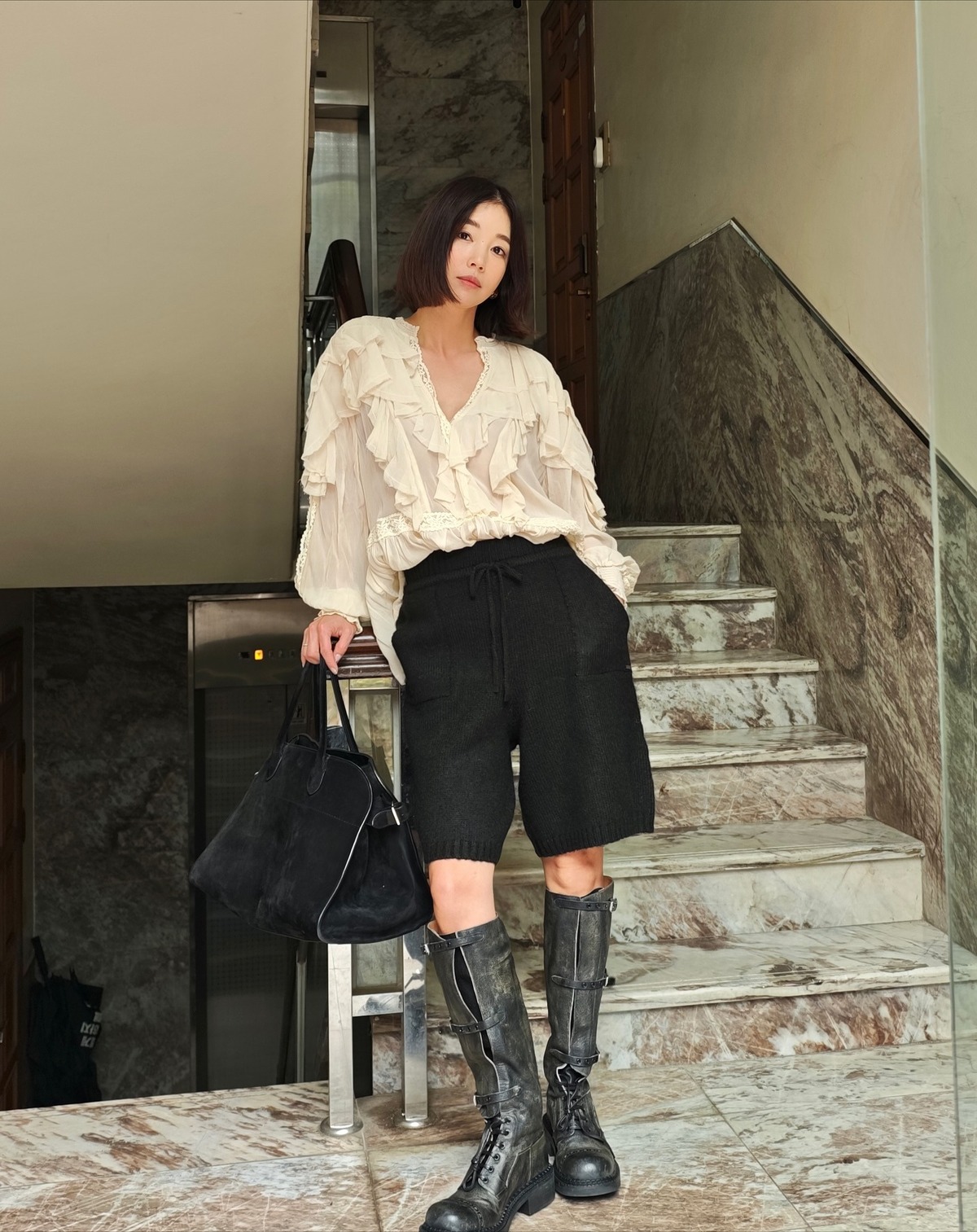 기은세는 아일렛 블라우스와 알파카 블렌디드 니트 쇼츠로 감성적인 무드를 연출하는가 하면, 후디에 니트 쇼츠를 더해 캐주얼한 룩을 완성했다. 뿐만 아니라, 아일렛 블라우스에 모헤어 블렌디드 니트 베스트와 니트 쇼츠로 따라 입고 싶은 가을 룩을 선보였다.