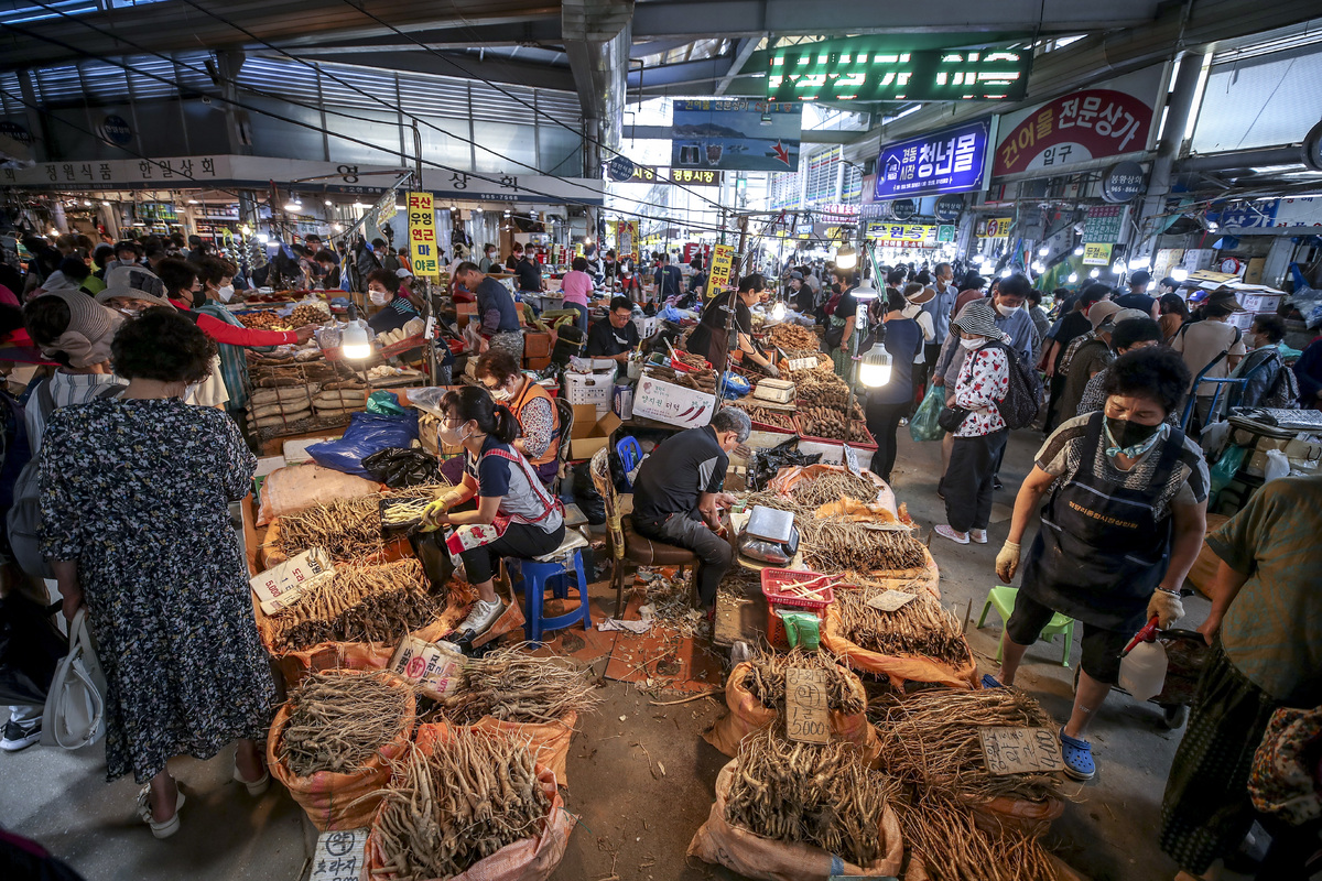 서울 동대문구 청량리종합시장을 찾은 시민들이 물건을 고르고 있다. 뉴시스