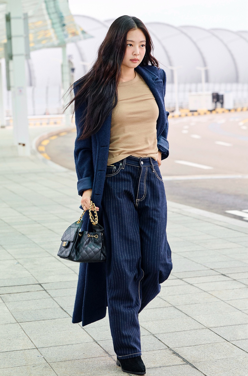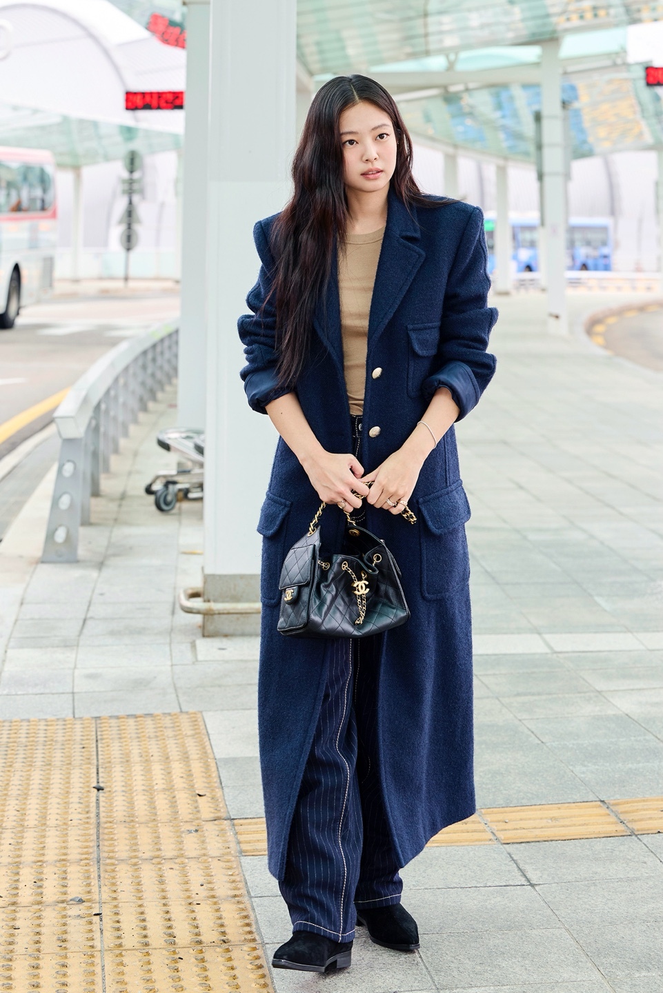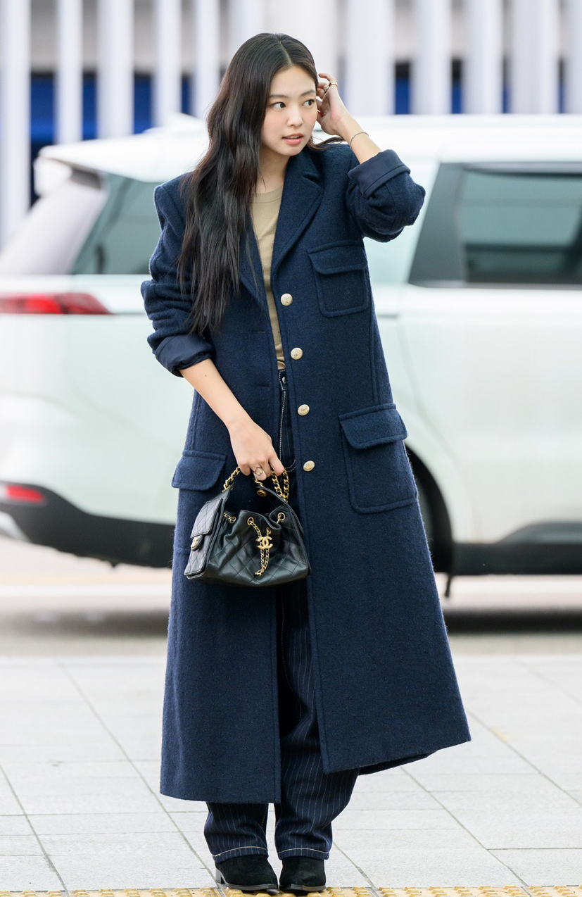 [한강로 컷] 제니, 오늘도 '갓제니'…롱 코트로 완성한 고혹적인 출국길