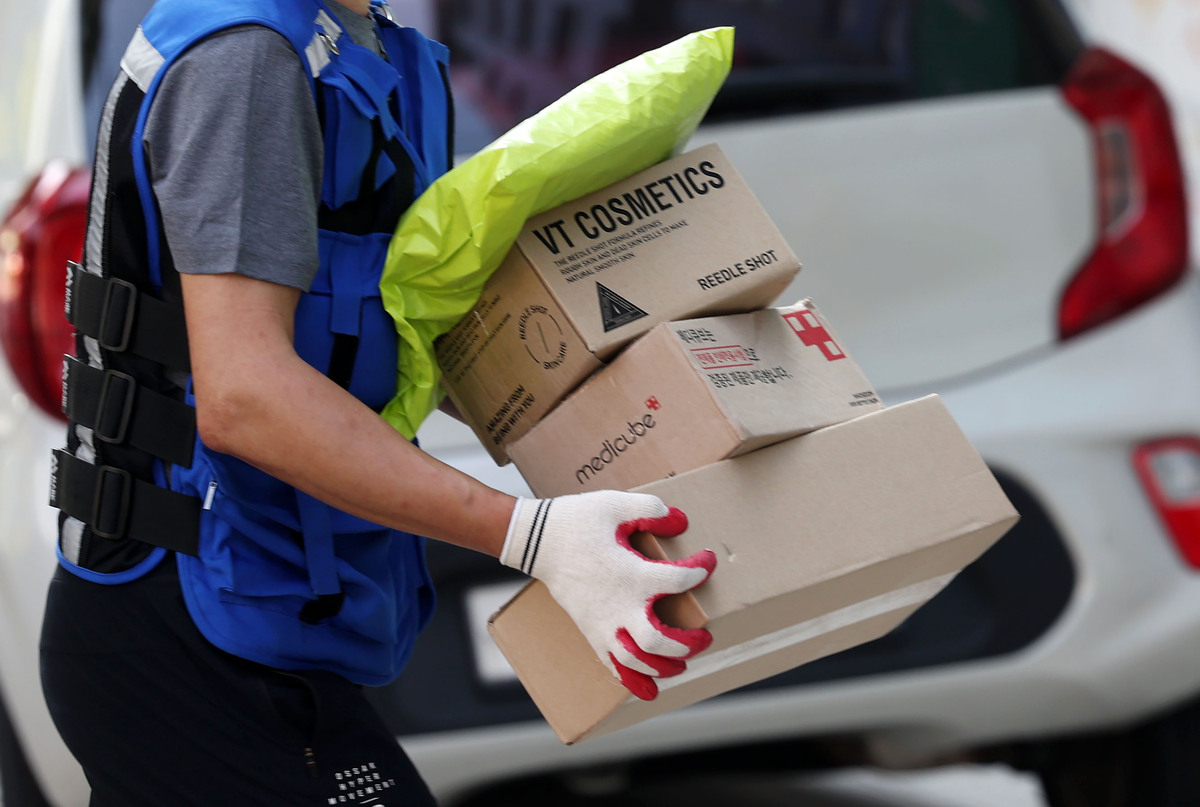 서울 마포구 한 주택가에서 택배기사가 택배를 배송하고 있다. 뉴시스