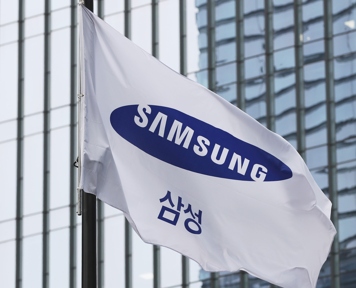 삼성전자가 올해 상반기 한국과 미국에서 1만건에 가까운 특허를 등록하며 역대 최대 기록을 세웠다. 서울 서초동 삼성사옥에서 사기가 바람에 휘날리고 있다. 뉴시스