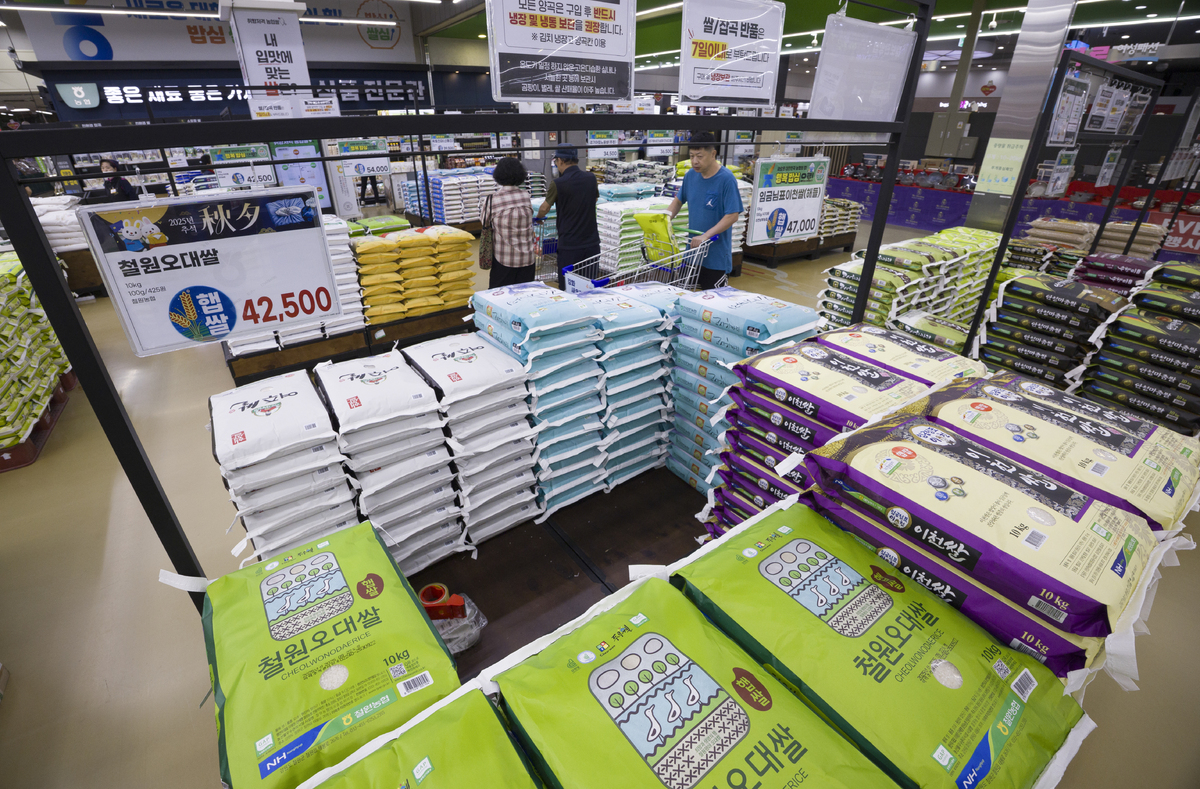 소매유통업 경기 전망지수가 한 분기 만에 다시 부정적인 수준으로 떨어졌다. 최근 서울 시내의 한 대형마트에 쌀이 진열돼 있다. 뉴시스