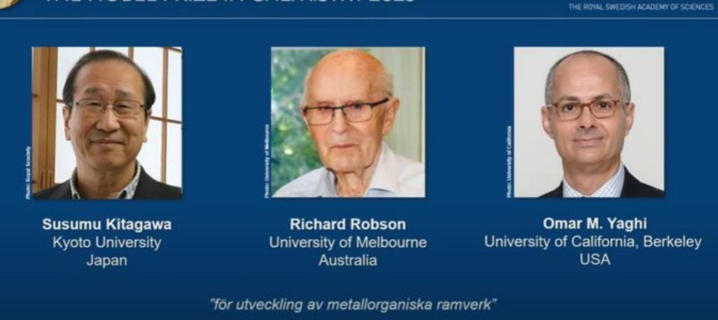 스웨덴 왕립과학원 노벨위원회는 기타가와 스스무(74) 일본 교토대 교수, 리처드 롭슨(88) 호주 멜버른대 교수, 오마르 M. 야기(60) 미국 UC버클리대 교수를 노벨화학상 수상자로 선정했다고 8일 발표했다.