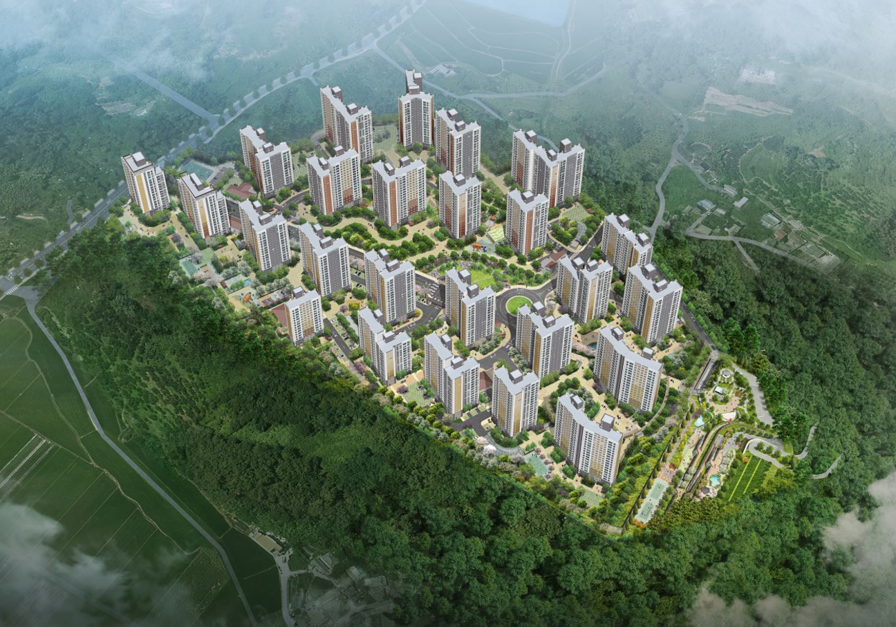 부지는 자연 녹지로 둘러싸여 있으며, 단지 상부에는 저층 주택 또는 타운하우스 형태의 소규모 건물이 위치한다. 단지 중앙에는 원형 광장과 녹지축이 조성되고, 산책로, 어린이 놀이터, 소규모 운동장 등 다양한 커뮤니티 공간이 마련되어 주민들의 쾌적하고 안전한 생활 환경을 제공할 계획이다.