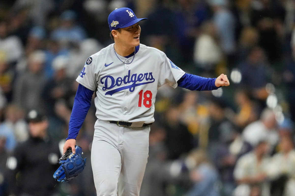 다저스는 15일(한국 시간) 미국 위스콘신주 밀워키의 아메리칸 패밀리 필드서 끝난 밀워키 브루어스와의 2025 MLB PS NLCS 2차전서 5-1 승리를 거뒀다. 하루 전 14일 1차전에선 선발로 나선 왼손 투수 블레이크 스넬이 8이닝 무실점 호투를 펼쳐 2-1 신승을 이끌더니 그 바톤을 야마모토가 이어받았다. 한 술 더 뜬 괴력투다. 상대 타선을 무려 9이닝 동안 3피안타 1피홈런 1볼넷 7탈삼진 1실점으로 꽁꽁 묶었다.