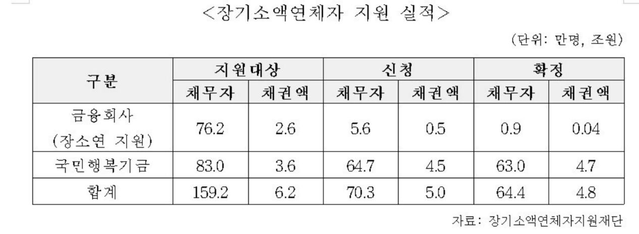 문재인 정부가 추진한 장기소액연체자 지원사업의 실적이 매우 저조했던 것으로 나타났다. 사업이 사실상 마무리된 이후에도 담당 재단이 청산되지 않은 채 운영을 이어가고 있어 효율성 논란이 제기되고 있다.
