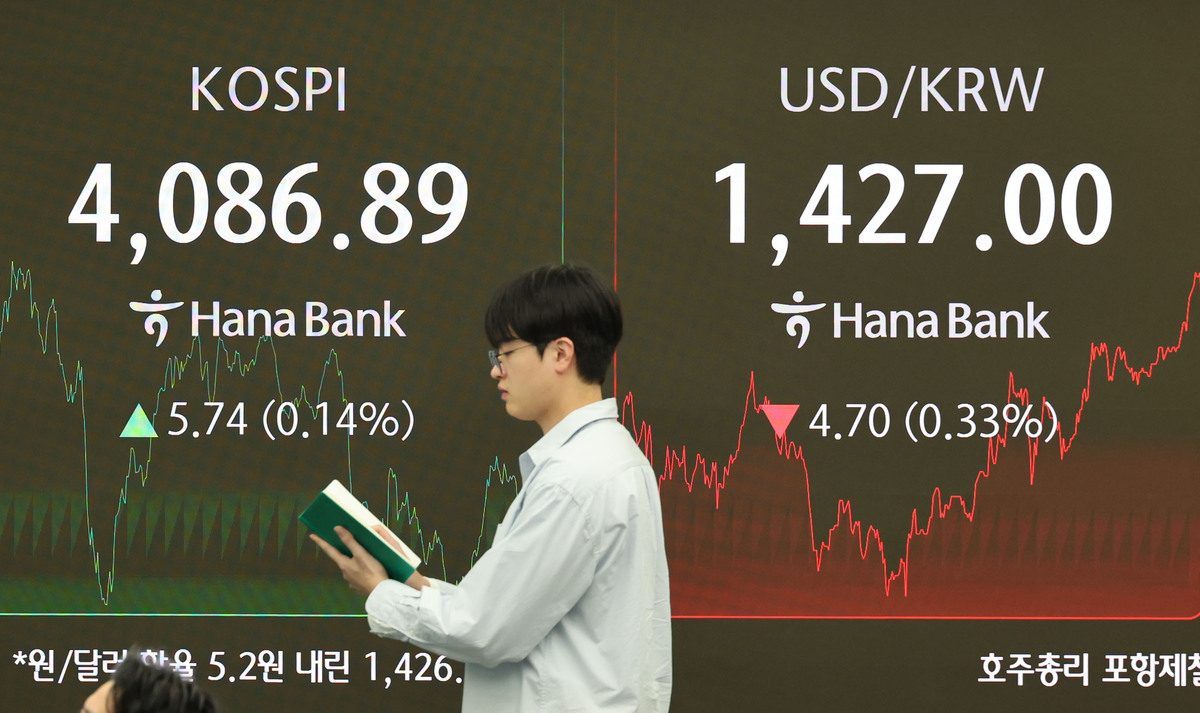 30일 오후 서울 중구 하나은행 딜링룸 전광판에 지수가 표시돼 있다. 이날 코스피는 전 거래일보다 5.74포인트(0.14%) 상승한 4086.89에 마감했다. 지난 29일 한미 관세협상 타결 소식에 사상 처음으로 4100선 넘어 한때 4146.72까지 치솟으면서 장중·종가 기준 사상 최고치 기록을 갈아치웠다. 뉴시스