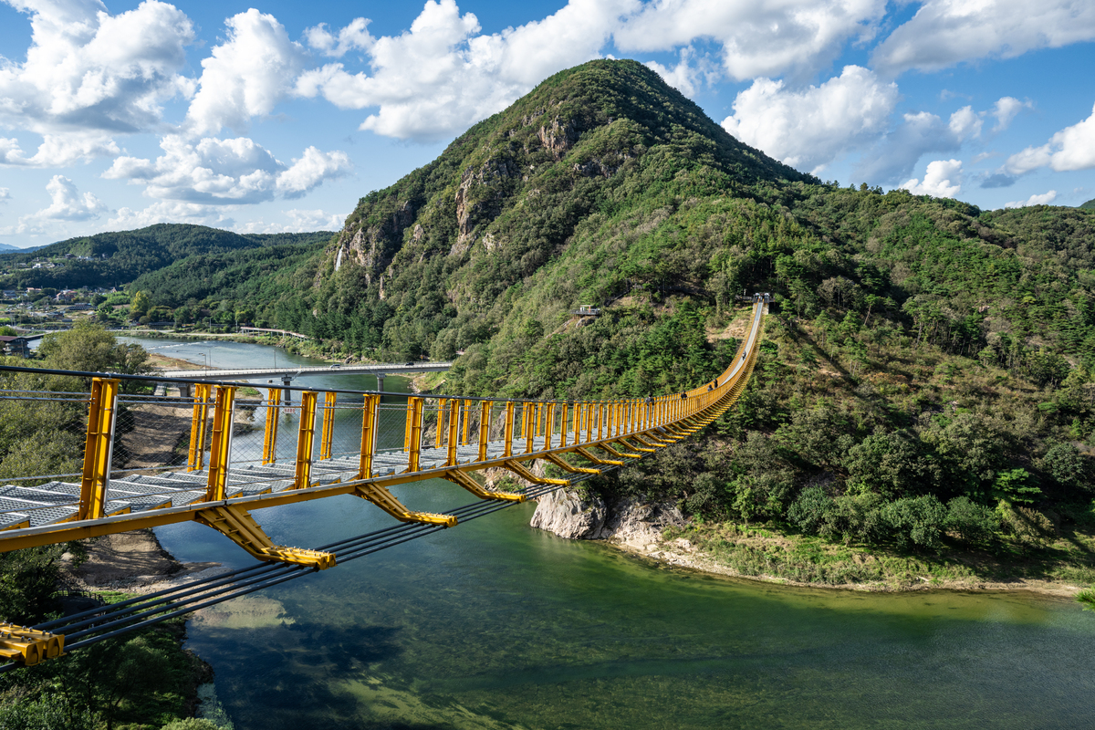 풍광을 보고 싶다면 월영산 출렁다리로 향하자. 2022년 개통한 월영산 출렁다리는 월영산과 부엉산 사이를 잇는 높이 45m, 길이 275m, 폭 1.5m의 무주탑 형태로 설계됐다. 다리 아래로는 금강 상류 물줄기가 흘러 산과 강이 조화된 아름다운 수변경관을 한눈에 조망할 수 있다. 주탑이 없는 형태로 출렁거림이 강하게 느껴져 아찔함을 즐길 수 있다.