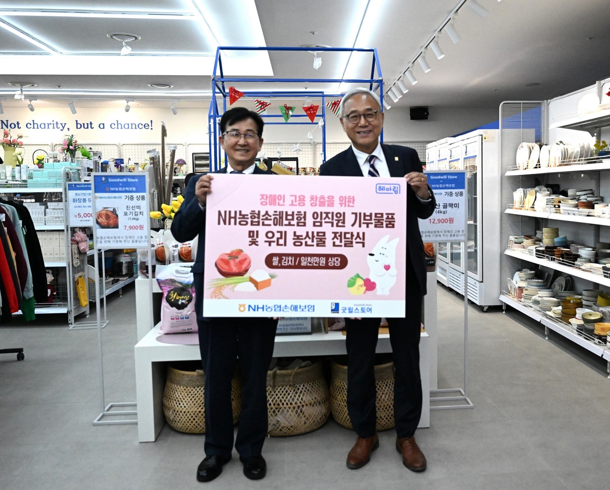 NH농협손해보험은 연말을 앞두고 밀알복지재단 ‘굿윌스토어’에 재사용 가능한 임직원 기증품과 우리 농산물을 기부했다고 25일 밝혔다.