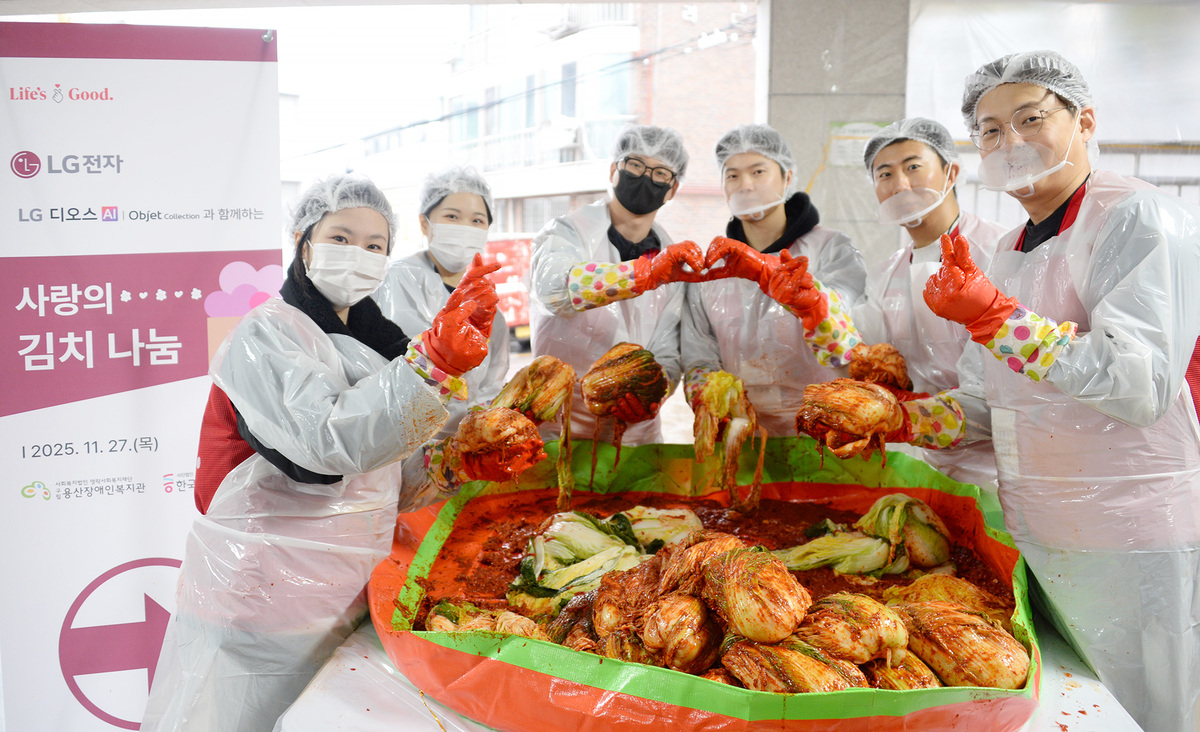 LG전자는 지난 27일 서울시 용산구 구립용산장애인복지관에서 ‘2025 LG전자 임직원 김치톡톡 김장 나눔 봉사활동’을 진행했다고 30일 밝혔다.