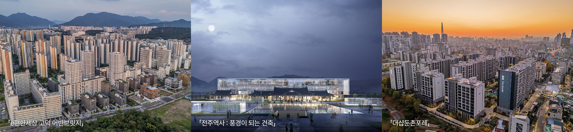 우선 시아플랜건축은 서울 강동구 고덕강일지구에 있는 「e편한세상 고덕 어반브릿지」는 ‘도시와 연결되는 열린 아파트’를 콘셉트로 2025 한국건축문화대상 건축물 부문 주택 분야 대상을 받았다.