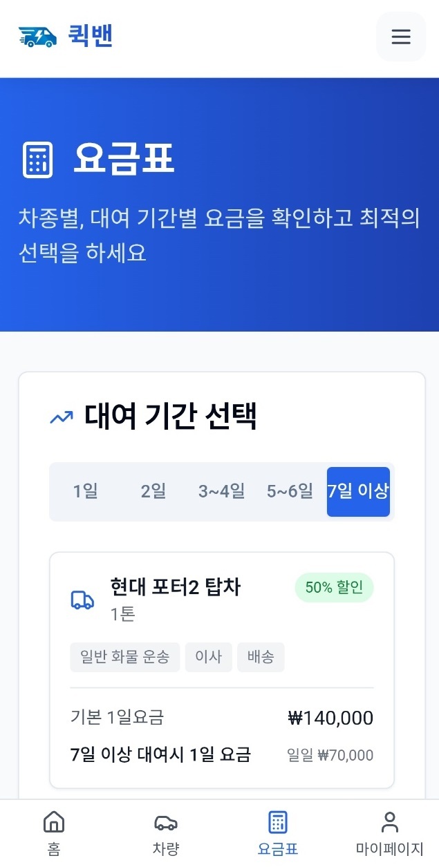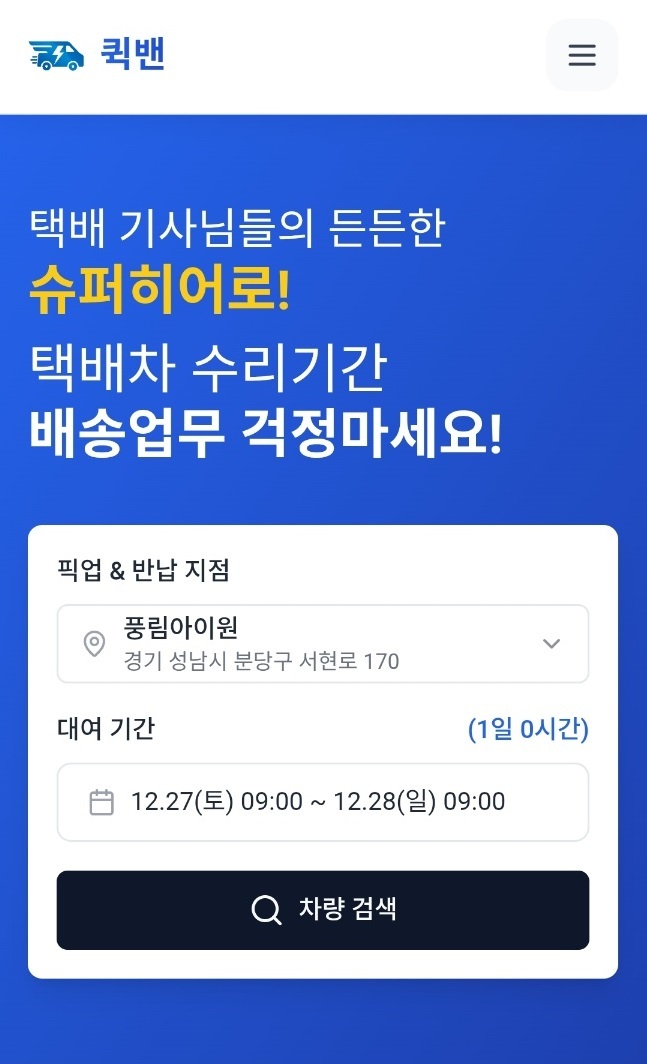 이어 “퀵밴 플랫폼은 이러한 문제를 정면으로 해결한다. 택배기사가 앱이나 콜센터를 통해 차량 대여를 신청하면, 사업자등록증과 화물운송자격증, 사고·고장 증빙자료를 확인한 후 동급의 자가용 화물차량을 단기간 대여해준다”고 설명했다.