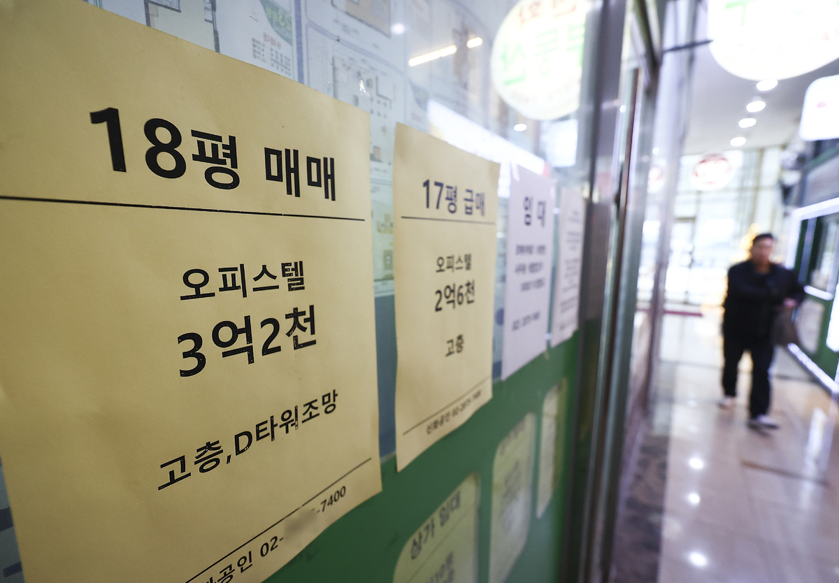 서울 시내의 한 오피스텔 밀집지역 인근 부동산에 오피스텔 매물 안내문이 붙어 있다. 뉴시스