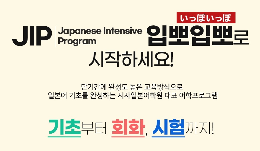 일본어를 처음 접하거나 기초를 확실히 다지고 싶은 초보 학습자를 위한 ‘입뽀입뽀’는 일본어의 ‘일’자도 모르지만 한번 시작해보고 싶거나 일본어 공부를 분명 한 적은 있지만 입이 열리지 않는 분들이 쉽게 일본어를 접할수 있도록 짜여진 시사일본어학원이 제공하는 일본어 기초 강좌다. 총 4단계로 이루어진 단계별 커리큘럼을 제공하며 대학정규과정 같은 완성도 높은 교육방식으로 단기간에 일본어 기초를 완성하는 것에 도움을 줄 수 있다.