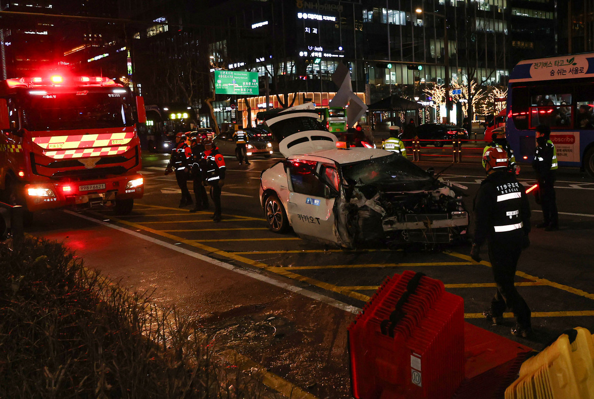 경찰에 따르면 전날 오후 6시7분께 종로구 종각역 앞 도로에서 전기차 택시가 불상의 이유로 급가속해 횡단보도와 보행자, 전신주를 잇따라 들이받은 뒤 신호대기 중이던 승용차 2대와 연이어 추돌하는 사고가 발생했다.
