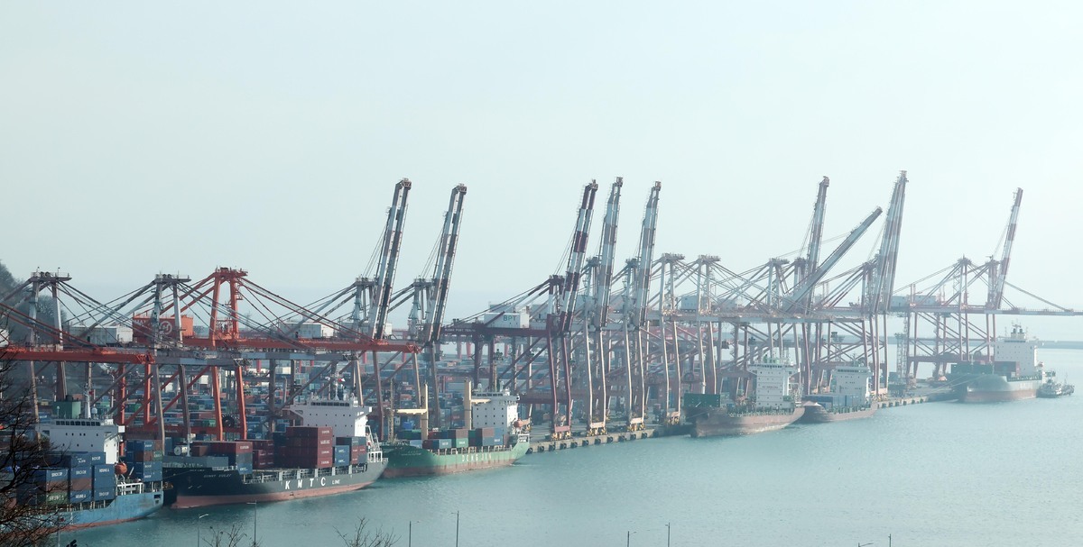 최근 부산 남구 신선대 부두에 컨테이너 선박들이 정박해 있다. 뉴시스