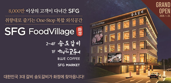 한편, SFG는 서울 창동, 판교, 분당, 미사, 일산, 의정부, 세종 등 전국 주요 거점 도시에서 성공적으로 푸드빌리지를 안착시키며 지역을 대표하는 외식 명소로 검증받은 바 있다.