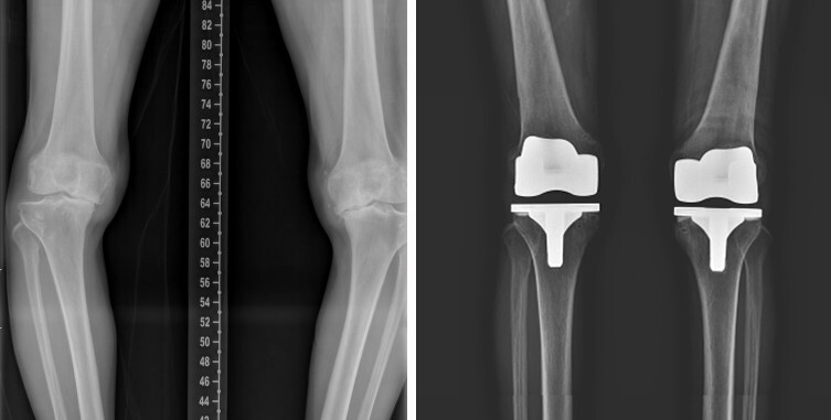 퇴행성 관절염이 진행될수록 다리 정렬이 무너지면서 O다리 변형이 동반되는 경우가 많다. 특히 무릎 안쪽 관절만 심하게 닳은 경우에는 체중이 안쪽으로 집중돼 통증이 악화된다. 이런 경우 연령과 활동량을 고려해 O다리 교정술인 근위경골절골술을 시행하면 체중 부하 축을 바꿔 관절염 진행을 늦출 수 있다.