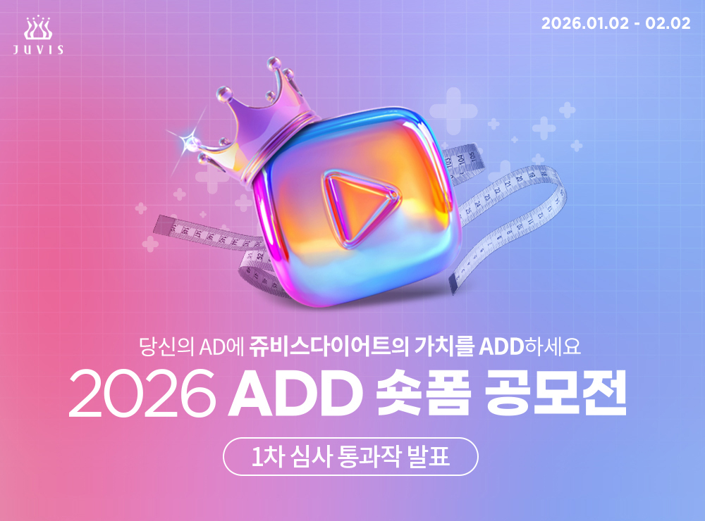 국내 최대 헬스케어 기업 쥬비스다이어트(JUVIS DIET)가 ‘2026 ADD 숏폼 공모전’ 1차 심사를 통해 최종(2차) 심사에 진출할 20편의 작품을 선정하고, 대국민 투표를 시작했다고 밝혔다.